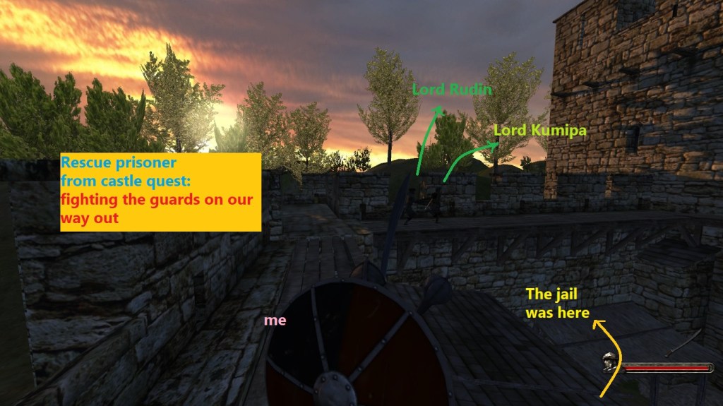 You then break out of jail, and fight the guards who surround you. If you and the lord you’re rescuing make it out without getting stopped, you will have finished the quest.