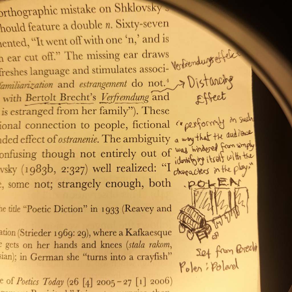 If Saussure’s work showed us that our words are arbitrary symbols defined by their relativites, then Shklovsky’s ostranenie (enstrangement) establishes the process by which these relativistic symbols can carry out an artistic effect.